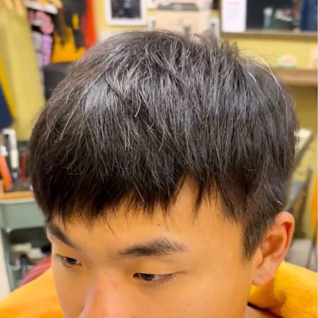 兩側乾淨俐落,讓頂部螺絲粉變成視覺焦點。並用特殊手法將螺絲粉的髮尾處,做成發泡蓬鬆狀態,更有強烈的個人特色。不只是帥氣,更帶出年輕人該有的不羈與滿滿自信。