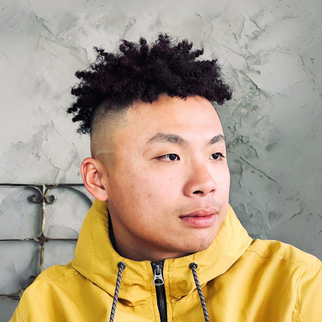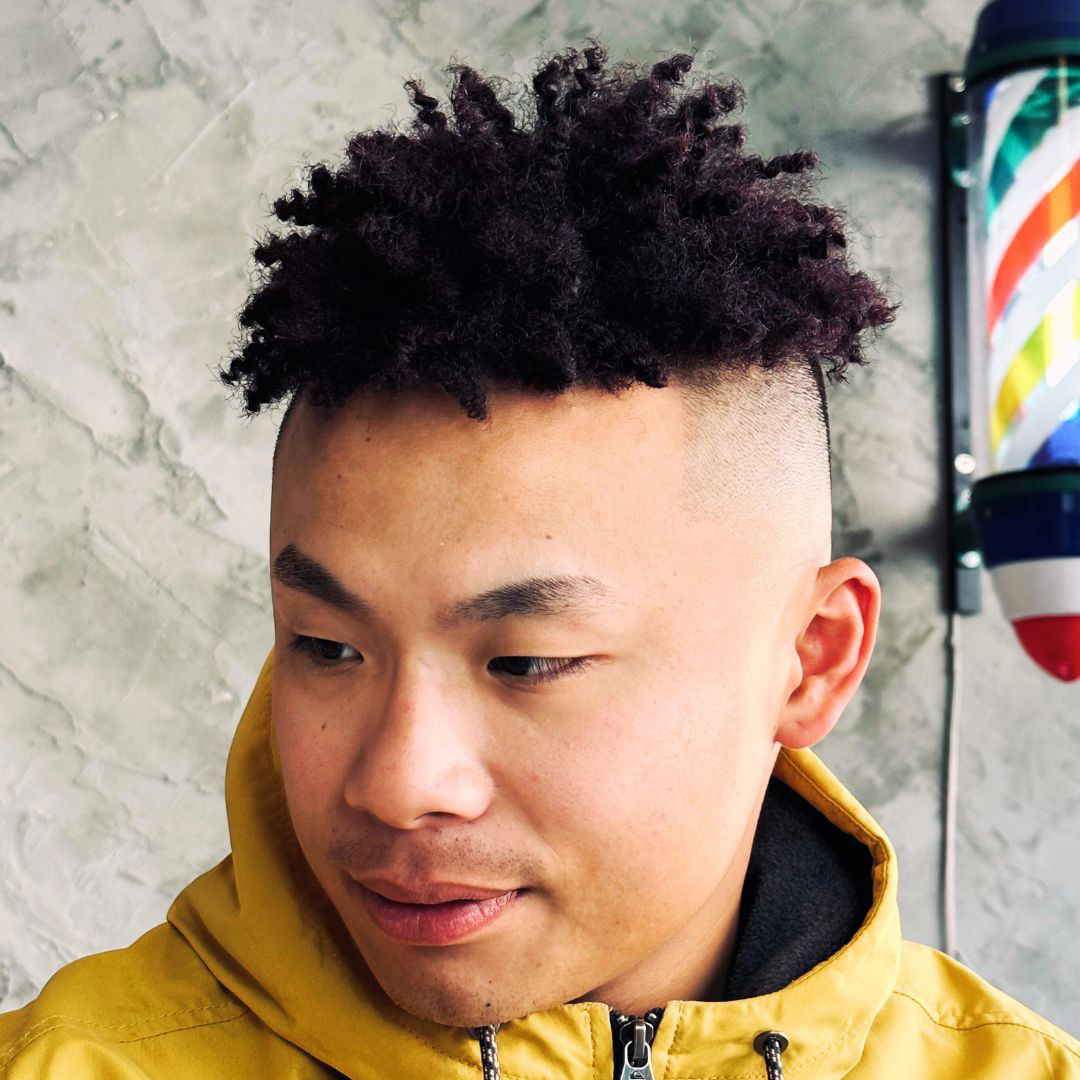 顧客的期望是要很酷、很美式的潮流感。頂部以圓形結構去做裁剪,兩側及後部做High Skin Fade。